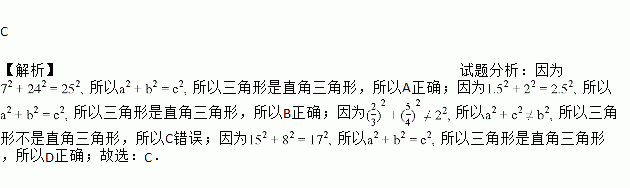 A. a=7,b=24,c=25 B. a=1.5,b=2,c=2.5