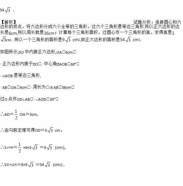已知一个圆的半径为6cm,这个圆的内接正六边形的周长和面积各是多少?