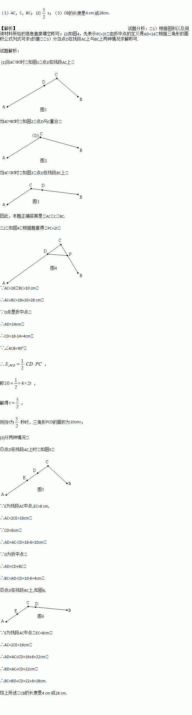 (3)若E为线段AC中点,EC=8cm,CD=6cm,求CB的长度.