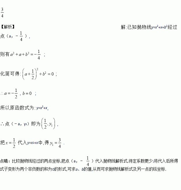 已知抛物线y=x2+x+b2经过点(a,﹣ )和(﹣a,y1),则y1的值是_____.