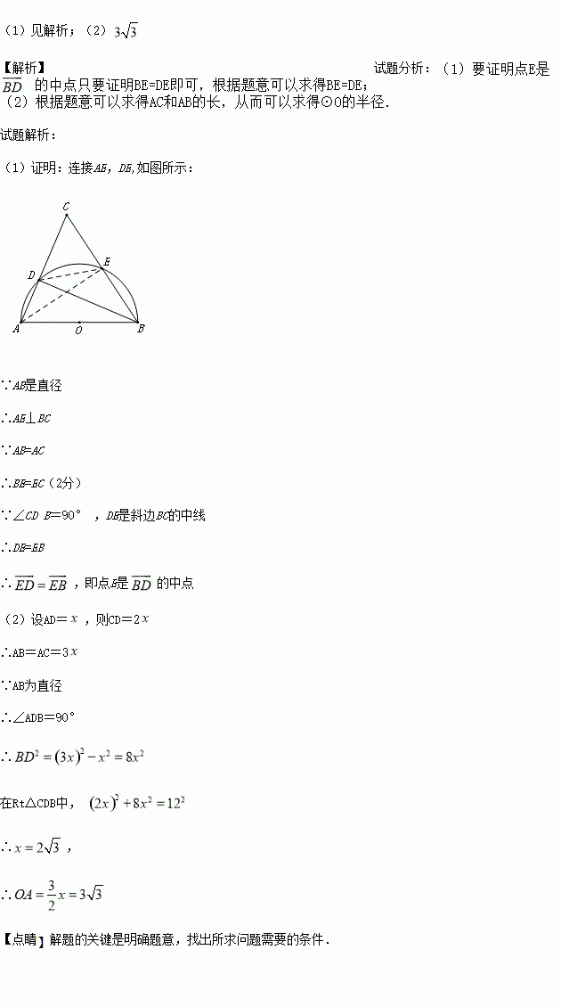 (2)当BC=12,且AD:CD=1:2时,求⊙O的半径.
