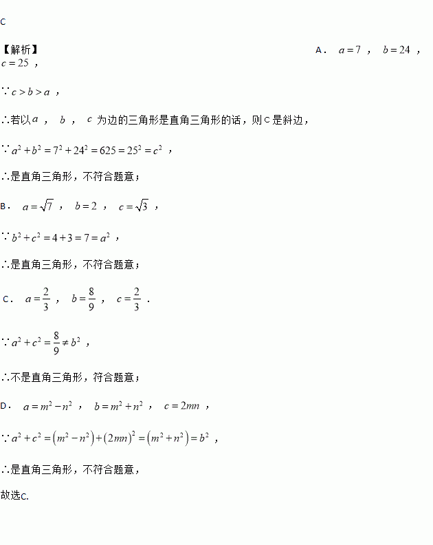 根据下列条件,以, , 为边的三角形不是直角三角形( ).