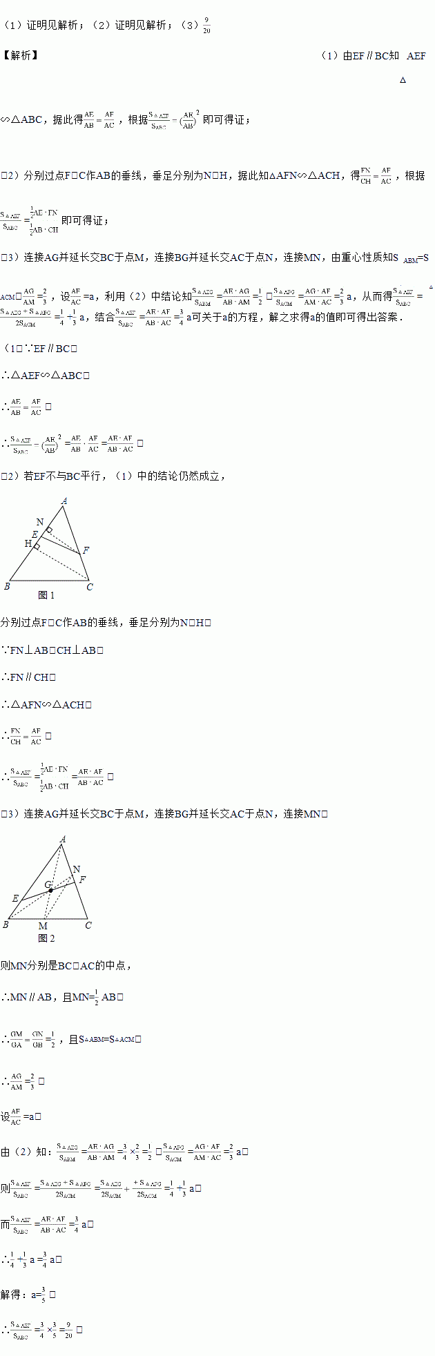 (3)如图3,若EF上一点G恰为△ABC的重心,