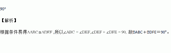 如图,有两个长度相同的滑梯(即BC=EF),左边滑梯的高度AC与右边滑梯水平方向的长度DF相等,则∠ABC+∠DFE=__________度