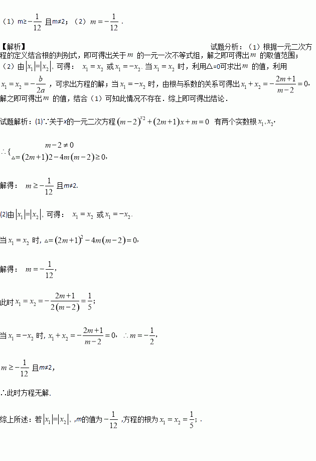 (2)若|x1|=|x2|,求m的值及方程的根.