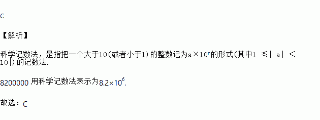 A. 8.2×105 B. 82×105 C. 8.2×106 D. 82×107
