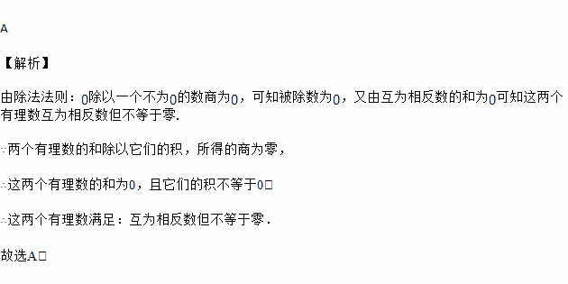 如果两个有理数的和除以它们的积,所得的商为零,那么,这两个有理数( )