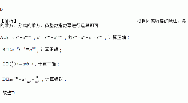 A. am÷an=am·a-n B. (a-m)-n=amn C. ()n=anb-n D. am-n=