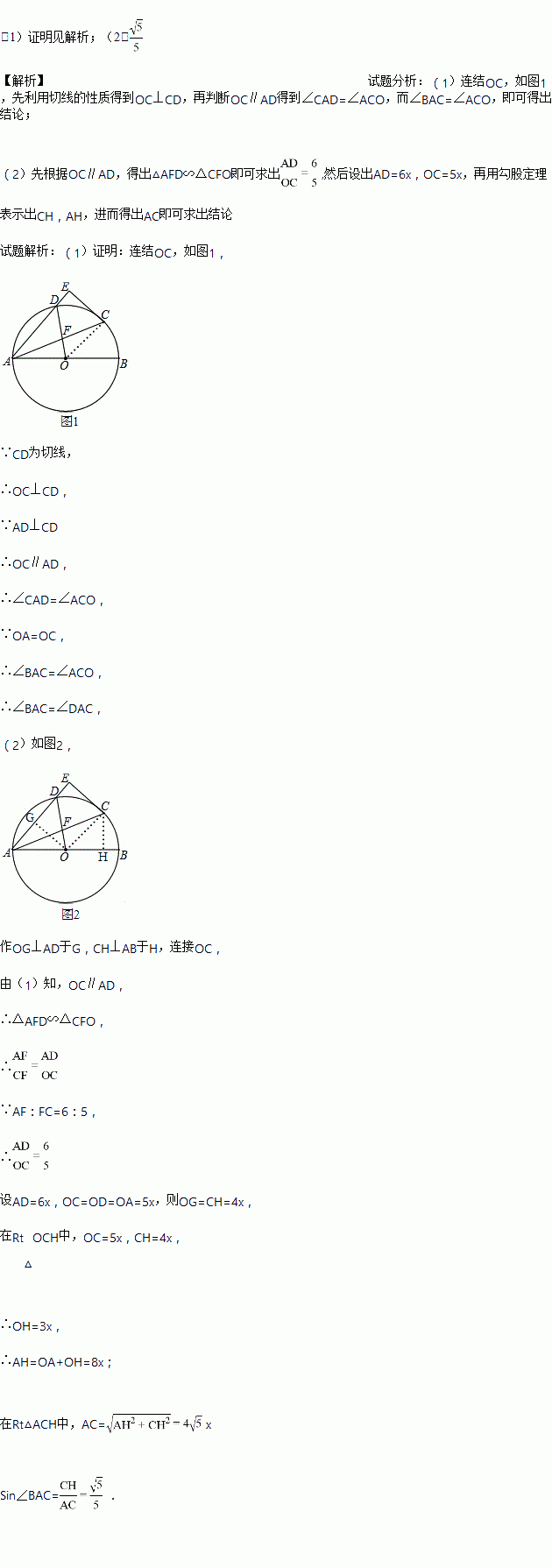 (2)若AF:FC=6:5,求sin∠BAC的值.