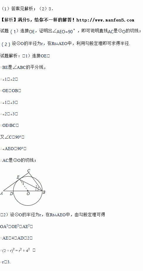 (2)当AE=4,AD=2时,求⊙O的半径.