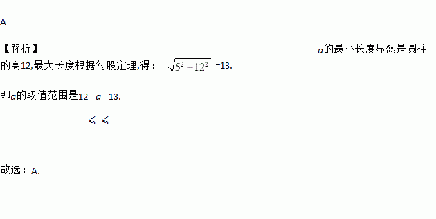如图是一个圆柱形饮料罐,底面半径是5,高是12,上底面中心有一个小圆孔,则一条到达底部的直吸管在罐内部分的长度(罐壁的厚度和小圆孔的大小忽略不计)范围是( )