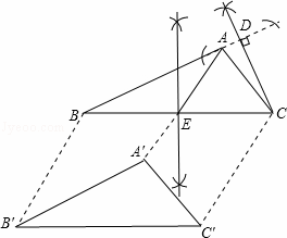 首先延长AB,作CD⊥AB,再作出BC的垂直平分线,即可得出AE是BC边上的中线,再平移A,B,C即可得出图形.