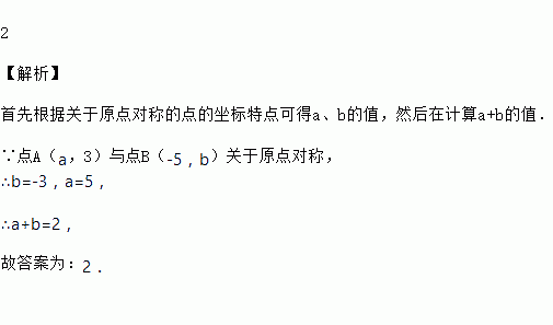 已知点A(a,3)与点B(﹣5,b)关于原点对称,则a+b=_____.