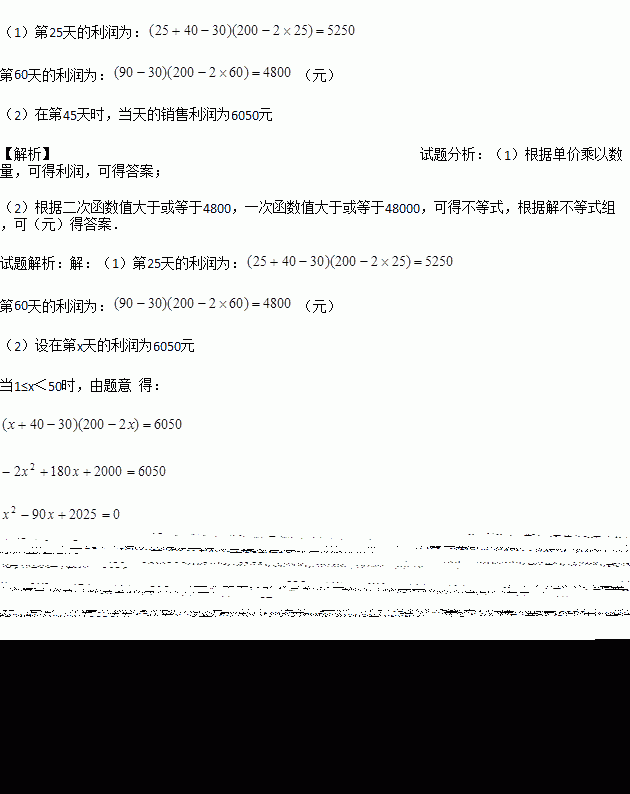 (1)分别求出第25天和第60天商家在销售该商品时所获得的利润;