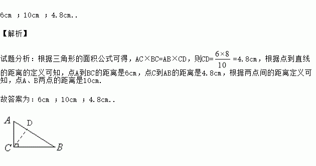 如图,那么点A到BC的距离是 ,点A、B两点的距离是 ,点C到AB的距离是 .