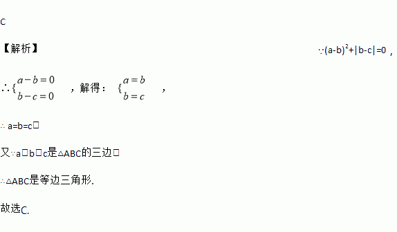 C 【解析】∵(a-b)2+|b-c|=0, ∴ ,解得: , ∴ a=b=c, 又∵a、b、c是△ABC的三边, ∴△ABC是等边三角形. 故选C.