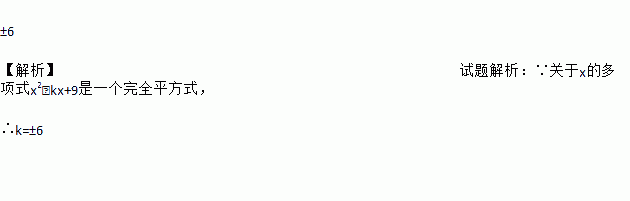 查看答案如果关于x的多项式x2﹣kx+9是一个完全平方式,那么k=________.