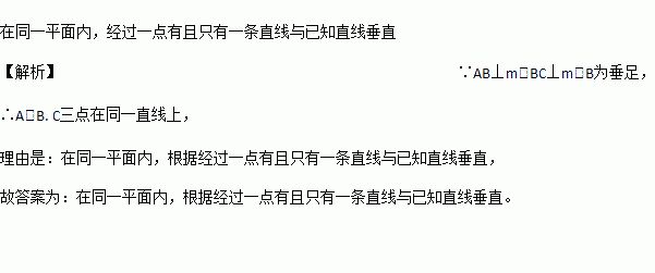 如图,AB⊥m,BC⊥m,B为垂足,那么A、B、C在同一直线上的依据是_________.