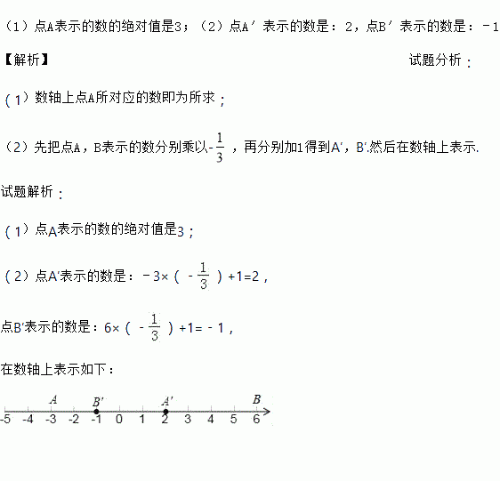 ,再把所得数对应的点向右平移1个单位长度,得到对应点A′,B′,在数轴上表示出点A′,B′.