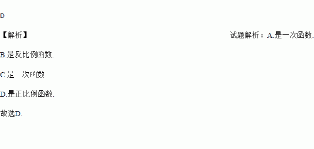 下列函数中,正比例函数是( )
