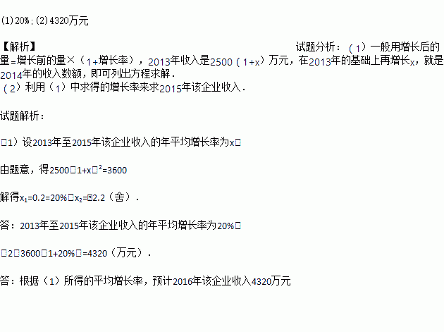 东台市经济开发区某企业2014年收入2500万元,2016年收入3600万元.