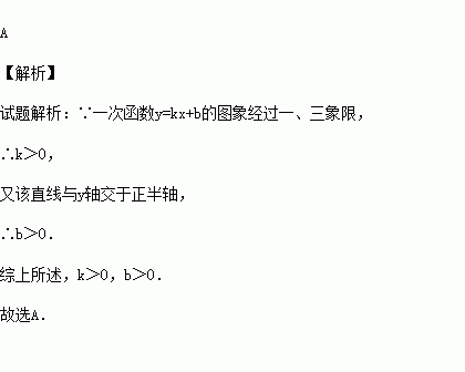 A.k>0,b>0 B.k>0,b<0 C.k<0,b>0 D.k<0,b<0