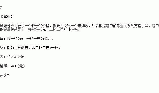 根据图中提供的信息,可知一个杯子的价格是( )