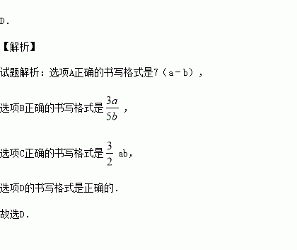 查看答案下列式子中,符合代数式的书写格式的是( )