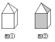 图①是由白色纸板拼成的立体图形,将它的两个面的外表面涂上颜色,如图②所示.则下列图形中,是图②的表面展开图的是( ).