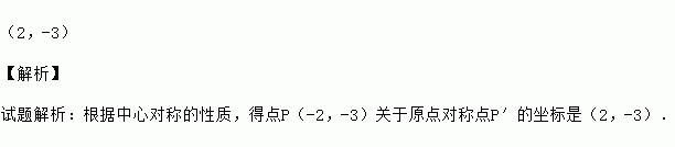 平面直角坐标系中,一点P(-2,3)关于原点的对称点P′的坐标是 .