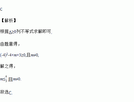 若关于x的一元二次方程mx2﹣4x+3=0有实数根,则m的取值范围是( )