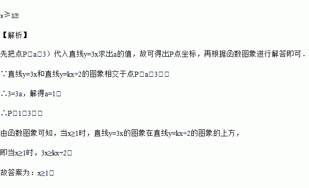 如图,直线y=3x和y=kx+2相交于点P(a,3),则不等式3x≥kx+2的解集为_____.