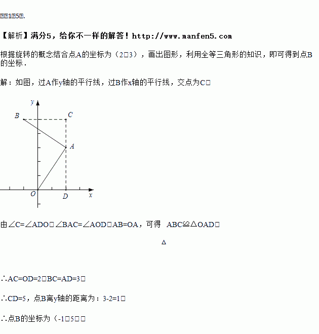 已知点A的坐标为(2,3),O为坐标原点,连接OA,将线段OA绕点A按顺时针方向旋转90°得AB,则点B的坐标为____
