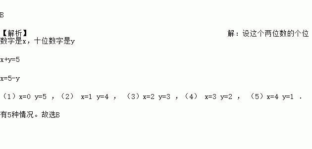 有一个两位数,它的十位数字与个位数字的和为5,则符合条件的数有( ) 个