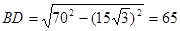 在Rt△CDB中,∵BC=70,BD2=BC2﹣CD2,