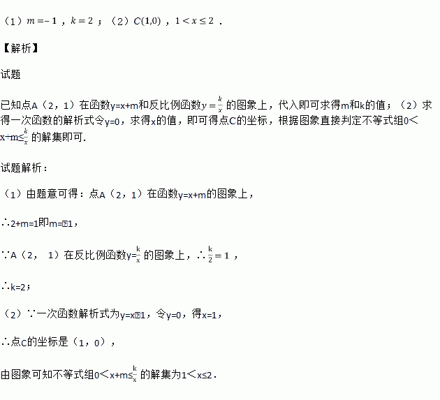 如图,一次函数的图象与反比例函数的图象交于A,B两点,且与x轴交于点C,点A的坐标为.