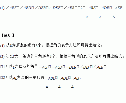 如图,(1)写出所有以E为顶点的小于平角的角;
