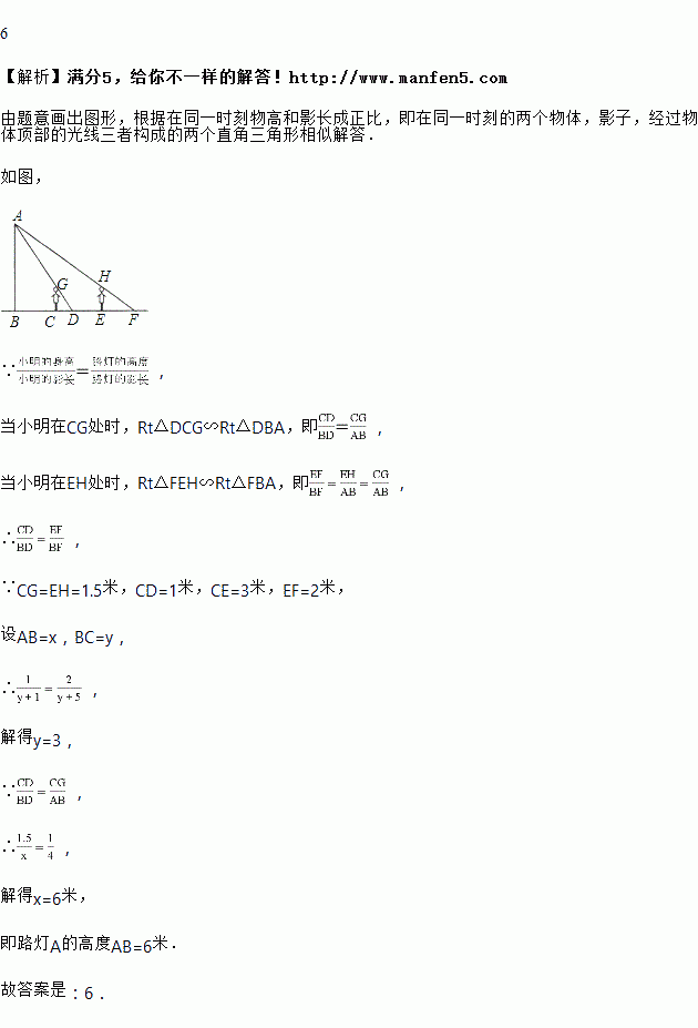 如图,王华晚上由路灯下的处走到处时,测得影子的长为米,继续往前走米到达处时,测得影子的长为米,已知王华的身高是米,那么路灯的高度______米.