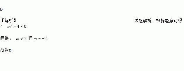 A. m≠2 B. m≠-2 C. m≠-2,或m≠2 D. m≠-2,且m≠2
