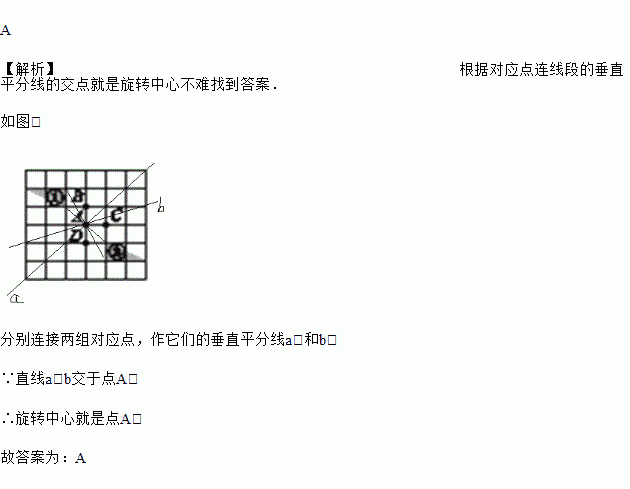 如图所示,在正方形网格中,图①经过旋转得到图②,其旋转中心是点________(填“A”“B”“C”或“D”).