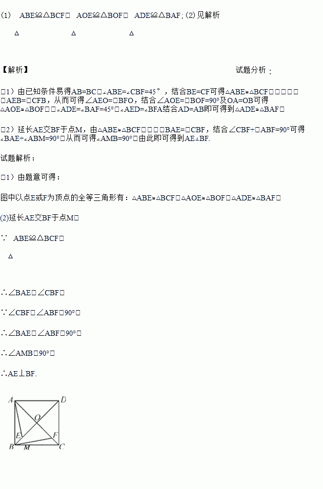 (1)写出所有以点E或F为顶点的全等三角形;(不得添加辅助线)