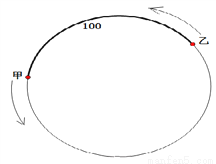 已知甲沿周长为300米的环形跑道上按逆时针方向跑步,速度为米/秒,与此同时在甲后面100米的乙也沿该环形跑道按逆时针方向跑步,速度为3米/秒.设运动时间为秒.