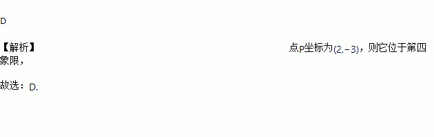在平面直角坐标系中,若点P坐标为(2,-3),则它位于第几象限