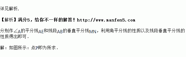 用尺规作图,在△ABC中作一点P,使点P到AB,AC两边的距离相等,且PA=PB.