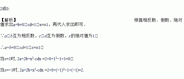 已知a,b互为相反数,c,d互为倒数,x的绝对值为1,求2a+2b+x2-cdx的值.