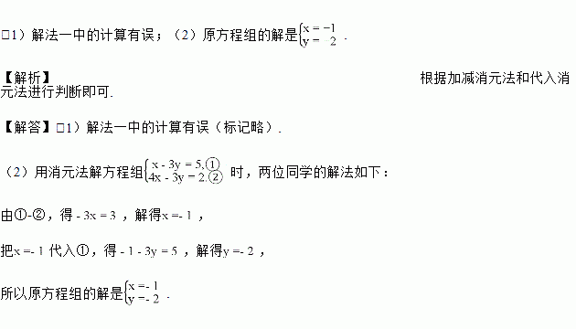 用消元法解方程组时,两位同学的解法如下:
