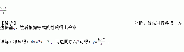 将方程变形为用含x的代数式表示y的形式,则y=________.![]()