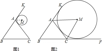 分析:(1)由等边△ABC,即可得∠B=∠BAC=60°,求得∠KAC=120°,又由⊙M与BA的延长线AK及边AC均相切,利用切线长定理,即可得∠KAM=60°,然后根据同位角相等,两直线平行,证得AM∥BC;