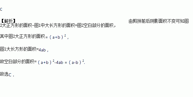 如图1,是一个长为2a宽为2b(a>b的长方形,用剪刀沿长方形的两条对角轴剪开,把它分成四个全等的小长方形,然后按图2拼成一个新的正方形,则中间空白部分的面积是( )