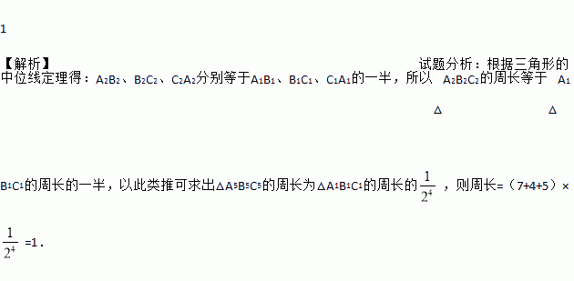 如图,在△A1B1C1中,已知A1B1=7,B1C1=4,A1C1=5,依次连接△A1B1C1三边中点,得△A2B2C2,再依次连接△A2B2C2的三边中点得△A3B3C3,…,则△A5B5C5的周长为 .